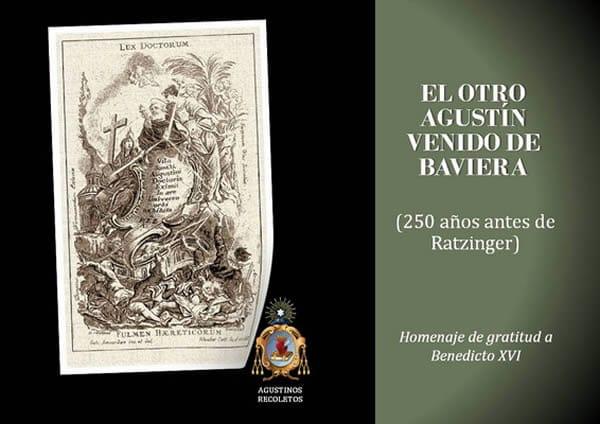 De alguna forma, los agustinos recoletos se sienten en deuda con el papa Ratzinger y, cuando acaba de retirarse a la vida privada y de cumplir 86 años (el pasado 16 de abril), le manifiestan su agradecimiento con un pequeño detalle: dando a conocer un material muy próximo a él y, como él, propagador en el pasado de la figura de san Agustín. Si, en los últimos tiempos, ha sido un papa bávaro el gran difusor del pensamiento agustiniano, en el siglo XVIII también vino de Baviera una de las obras que más han influido en el conocimiento y la representación plástica del Santo de Hipona.
