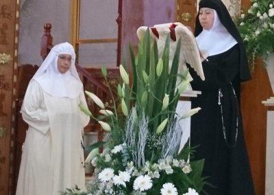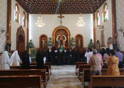 Durante las preces se invitó a cada una de las hermanas profesas a que hicieran una petición en ese día de fiesta. Se recordaron a todas las hermanas que fallecieron en esta comunidad, y se agradeció la generosidad de los bienhechores del convento. Posteriormente se llevó a cabo un convivio fraterno, estando presentes algunos bienechores y amigos de la comunidad, quienes compartieron la alegría que tienen las religiosas al cumplir 75 años habitando el Monasterio de Santa Mónica.