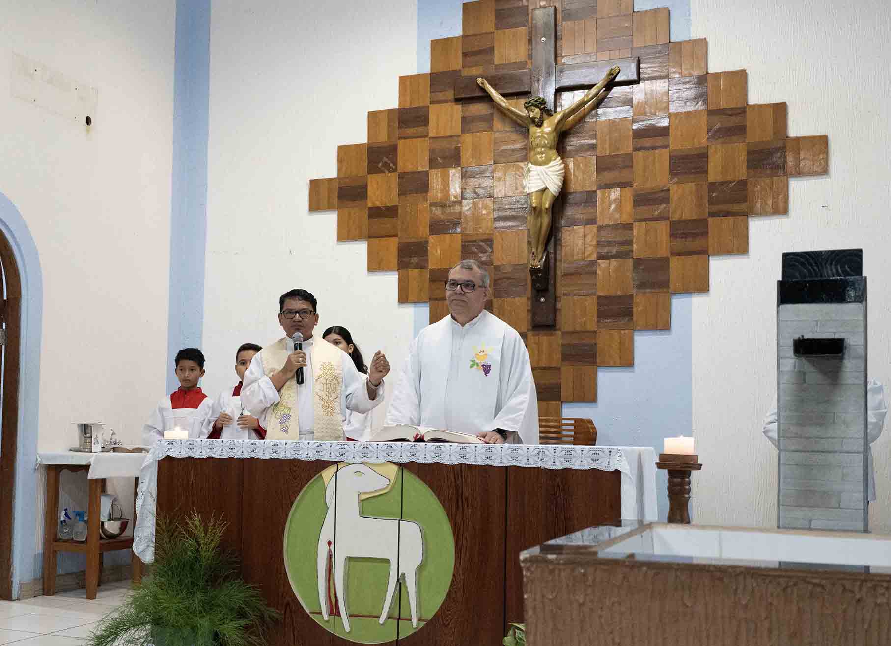 The Eucharist, presided over by the Prior General, included a homily in which he invited the community to have families in the image of the Holy Trinity, and emphasized the importance of helping, forgiving and loving one another. He also emphasized the need to be reflections of the Father, being light and support for others: And we, when we see ourselves or see families, we may ask ourselves: Do they help each other? Do they forgive each other? Could it be that they love each other? Finally, he mentioned that just as Jesus told his disciples that he was the reflection of the Father, sotoo, we should all strive to be light, to be help, to be reflections of the Father.