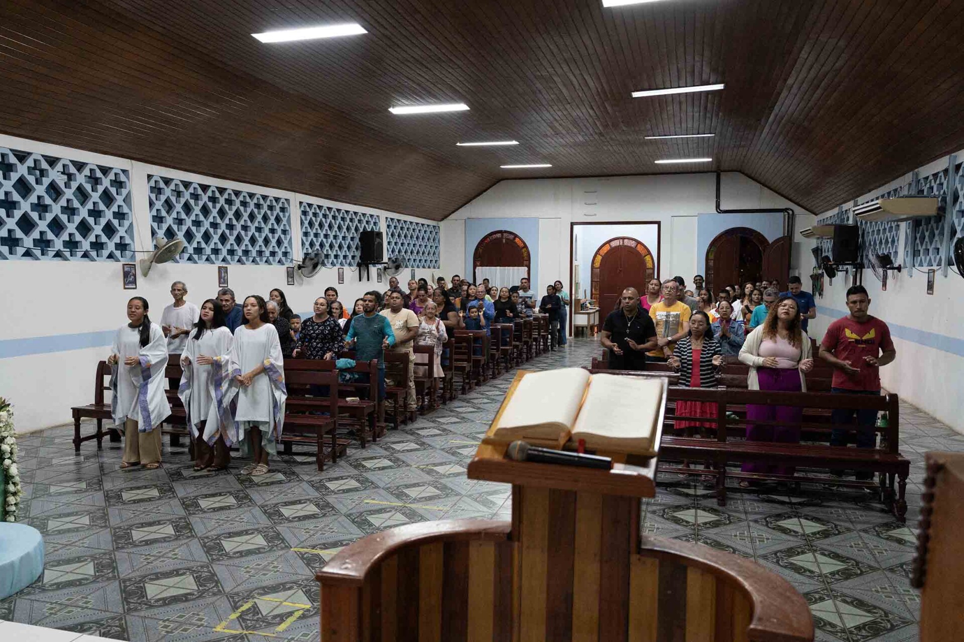 Precisely, the first community visited by the Prior General in the Amazon was that of Labrea. Upon arrival, they attended the celebration of the Eucharist in the community of Our Lady of Fatima, where the remains of Sister Cleusa, an Augustinian Recollect missionary, who is in the process of beatification, are kept. The liturgy in this region is joyful, participatory and is always accompanied by songs.