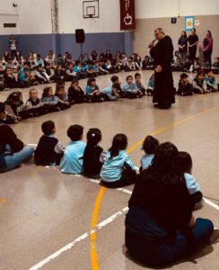 Más tarde, en el gimnasio del colegio, los alumnos pudieron dialogar con Fr. Miguel Ángel, haciéndole preguntas sobre su vocación y su labor como Prior general. Este encuentro se vivió con cercanía y alegría, fortaleciendo los lazos entre la comunidad educativa y la Orden. La jornada culminó con una Eucaristía y una reunión con el Consejo Pastoral Parroquial, en la que se presentaron los desafíos pastorales de la parroquia.